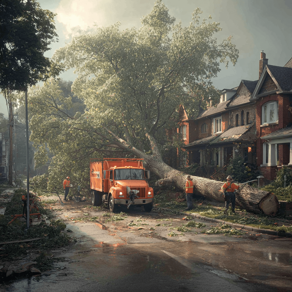 We mobilize emergency tree crews across East York for fallen trees, partially failed trees, hanging limbs and storm-damaged trees that present an immediate risk to people and property. Our crews are equipped and insured for this work and we prioritize emergency calls to get to you as quickly as conditions allow.