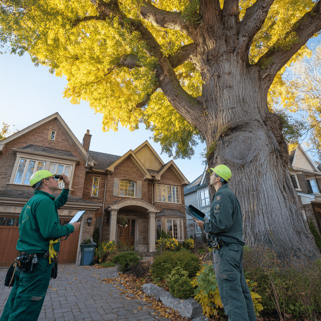 Professional tree services crew assessing a large sugar maple on a Willowdale North York estate property
